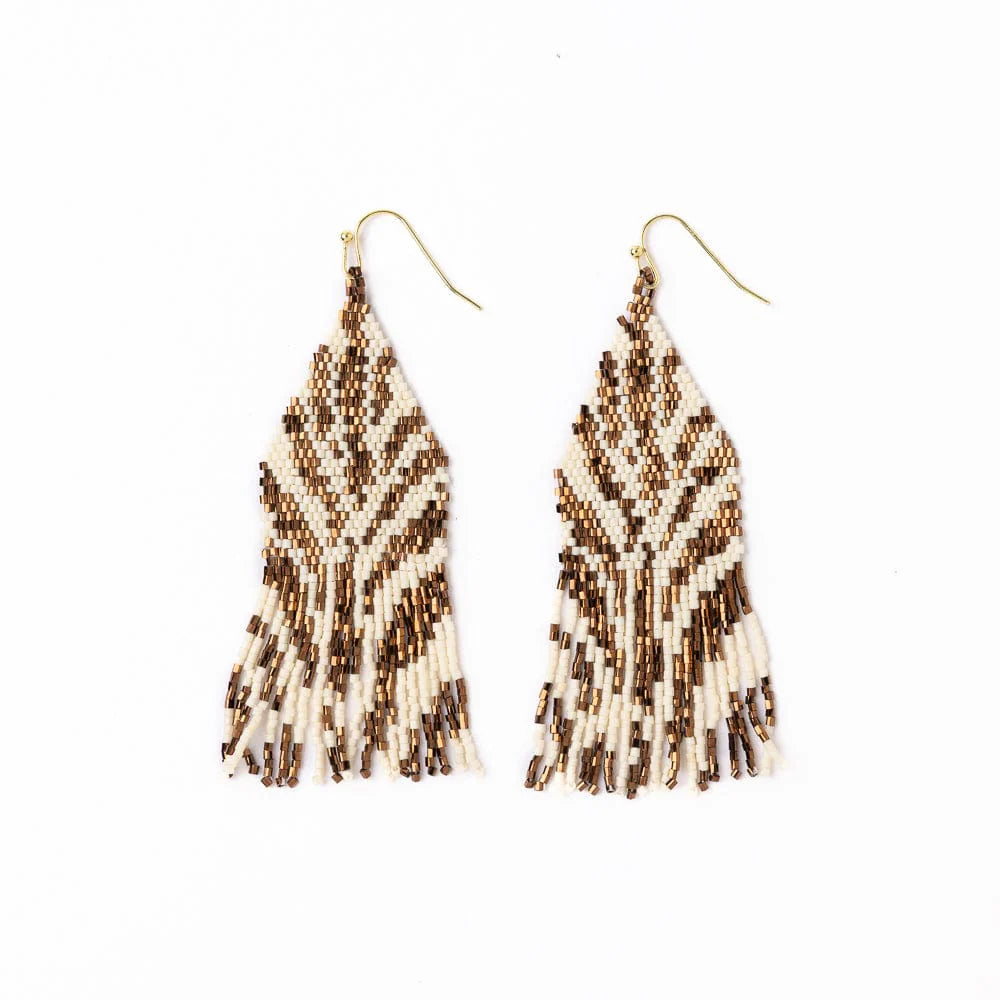 Delilah Zebra Print Beaded Fringe Earrings Bronze + Ivory