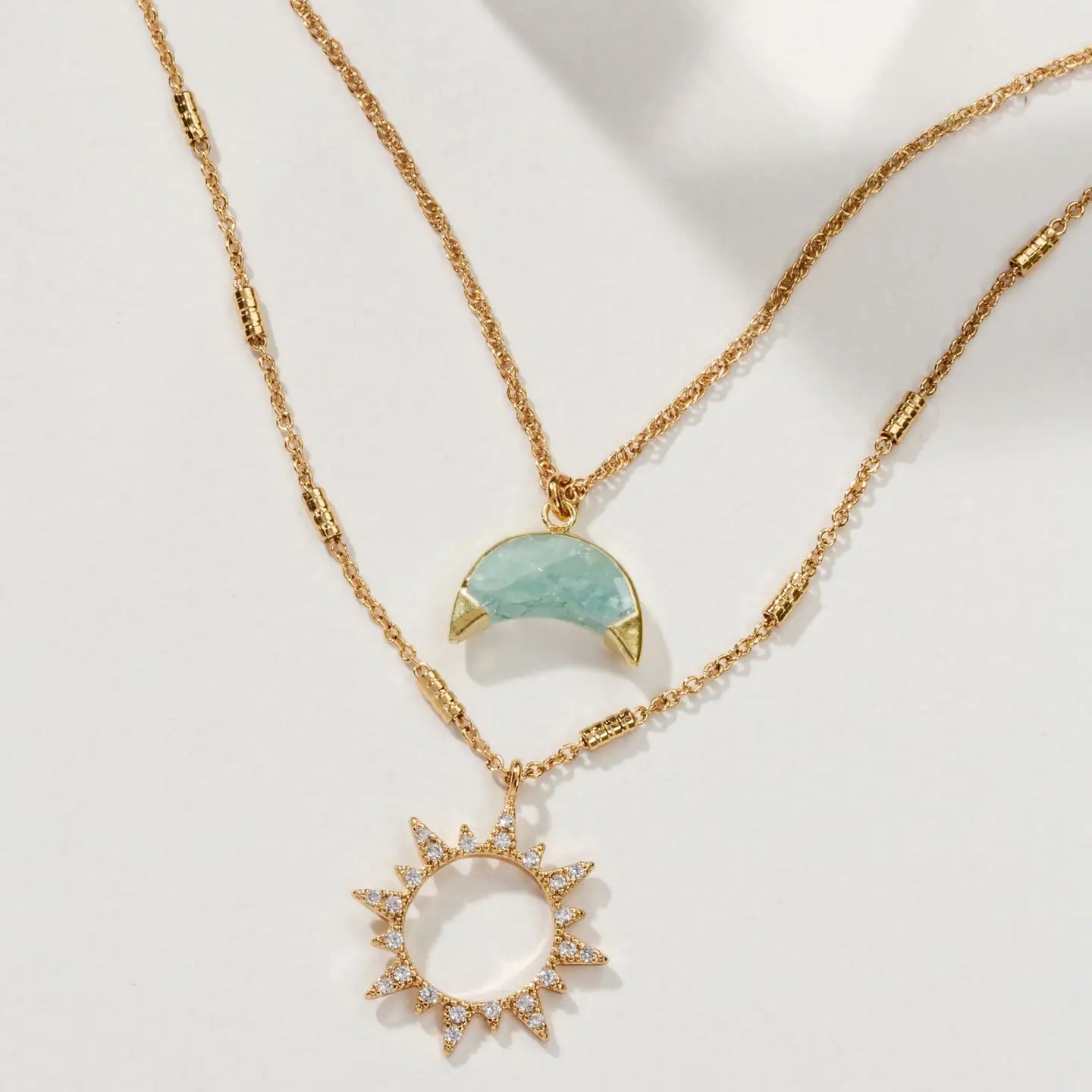 Live By the Sun, Love By the Moon Necklace Set in Aquamarine
