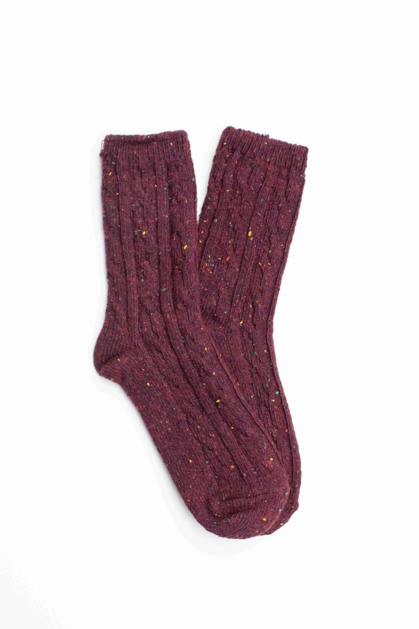 Wool Blend Speckled Socks in Wine