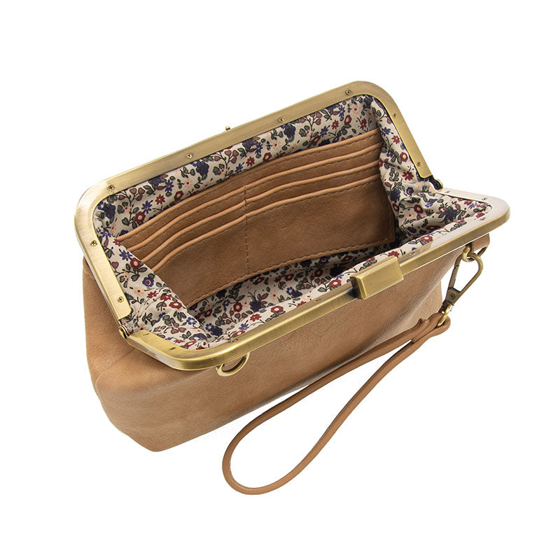 Vivie Kisslock Convertible Crossbody Wristlet in Tuscan Tan