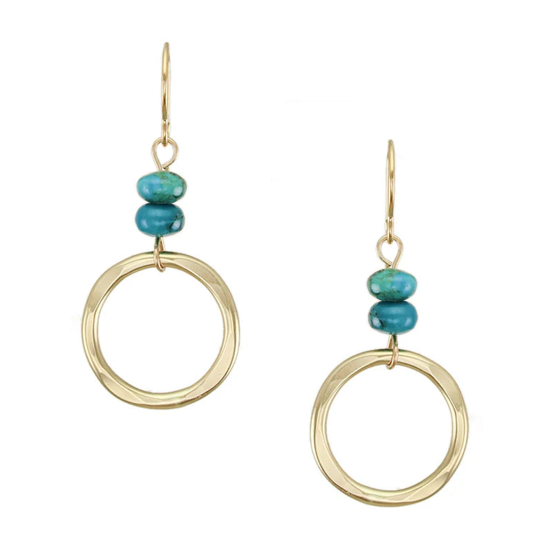 Medium Hammered Ring with Turquoise Beads Wire Earrings