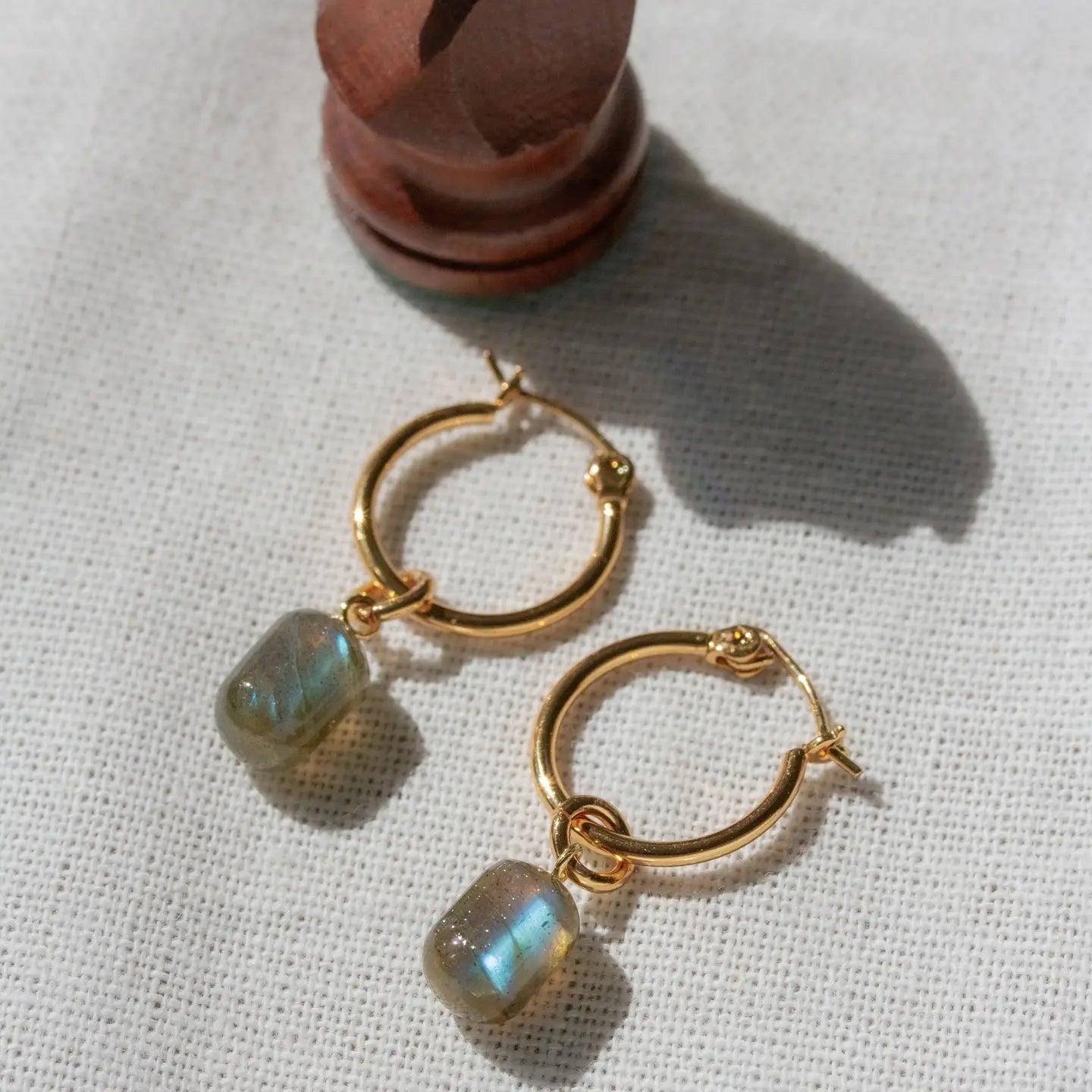 Pill Drop Hoop Earrings Labradorite