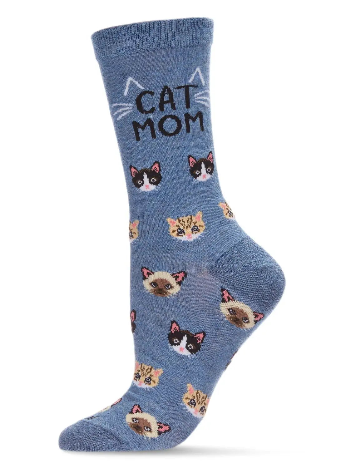 Cat Mom Bamboo Crew Socks in Denim Heather