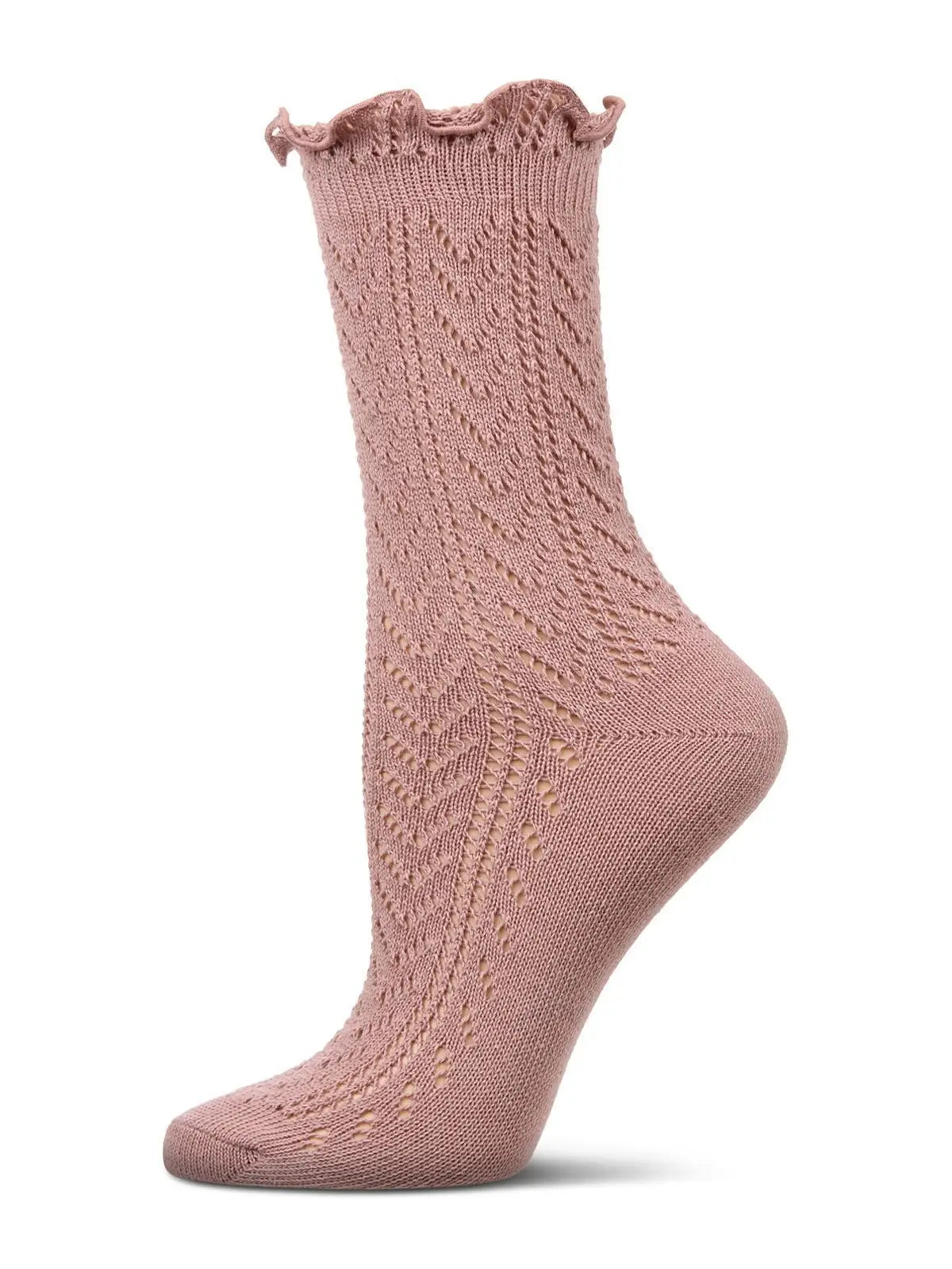 Ruffle Pointelle Crew Socks in Mauve
