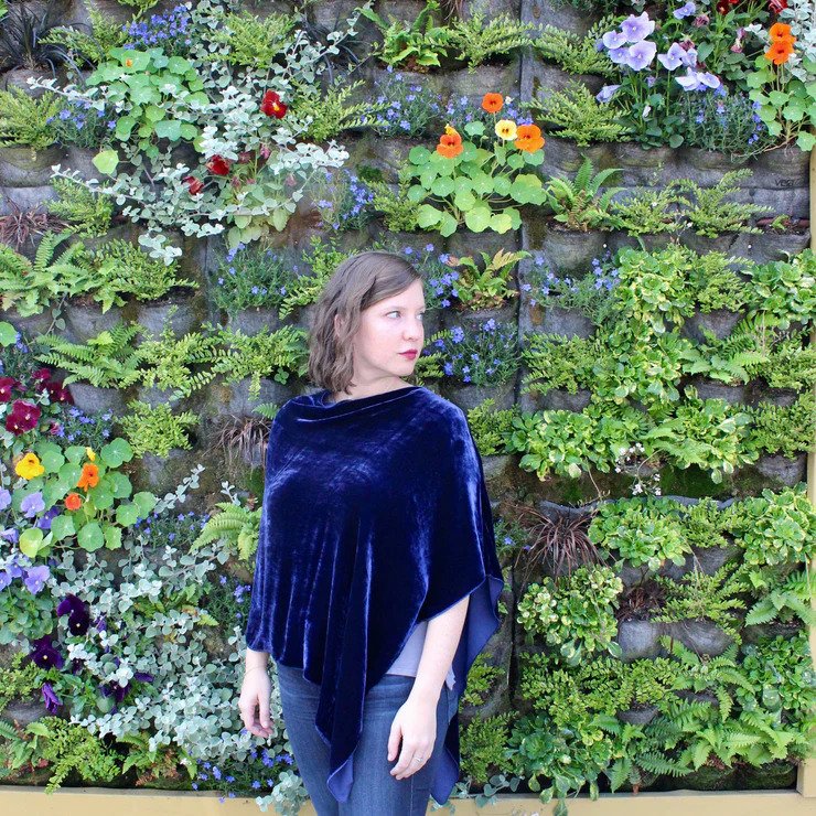 Silk Velvet Poncho in Indigo