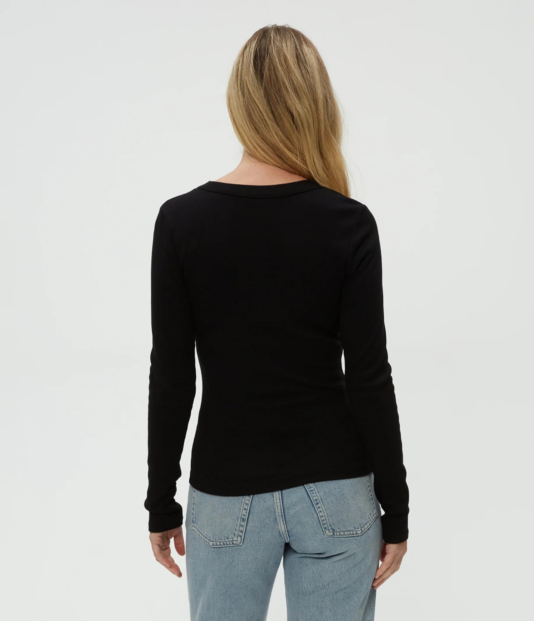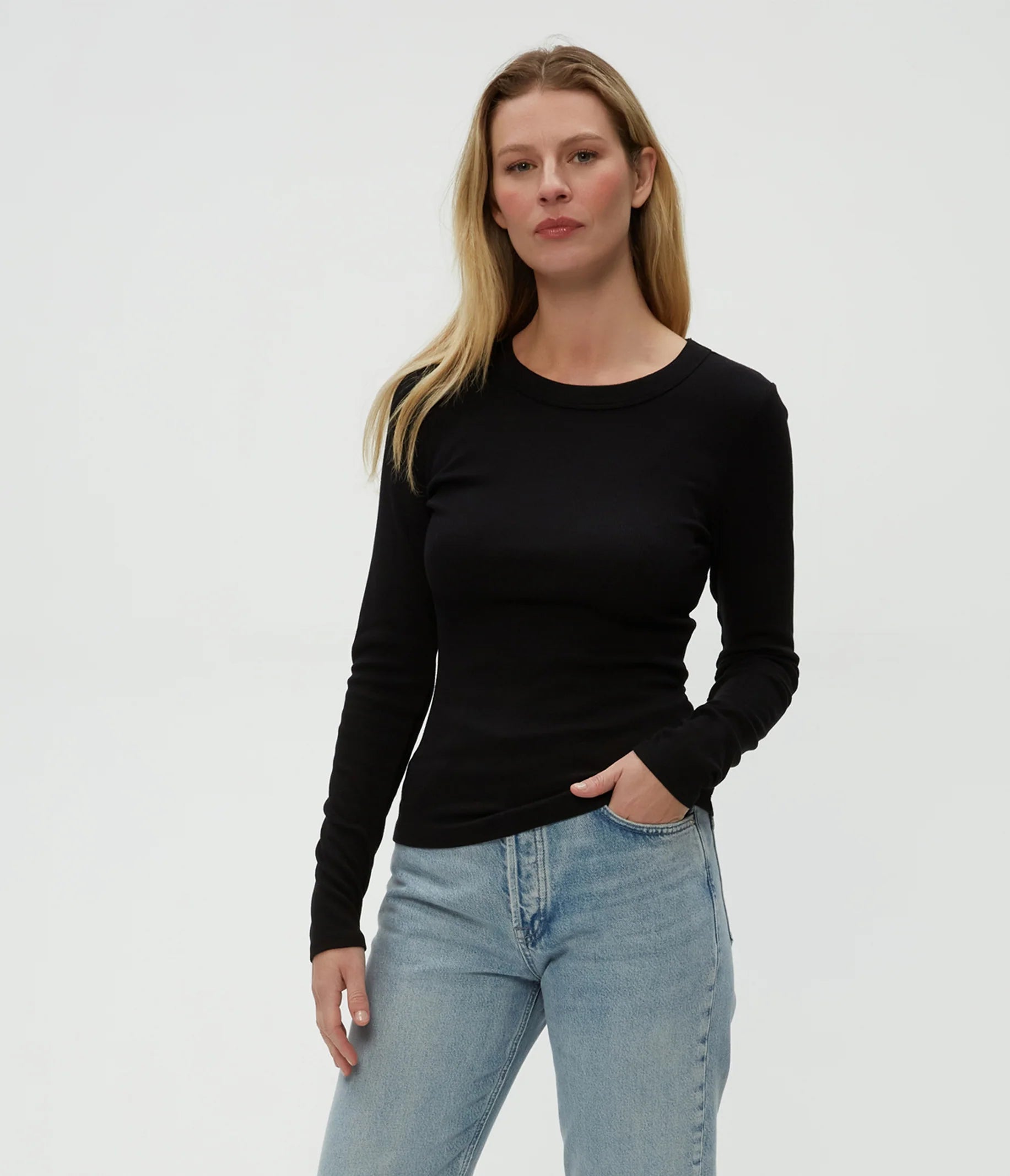 Zola Ribbed Long Sleeve Crew Tee in Black