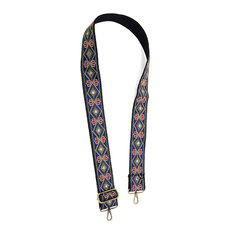 Navy Ornate Diamond Embroidered Guitar Strap 2"