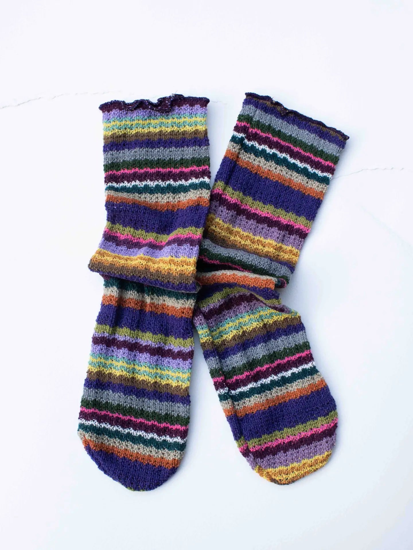 Knit Stripe Socks in Violet