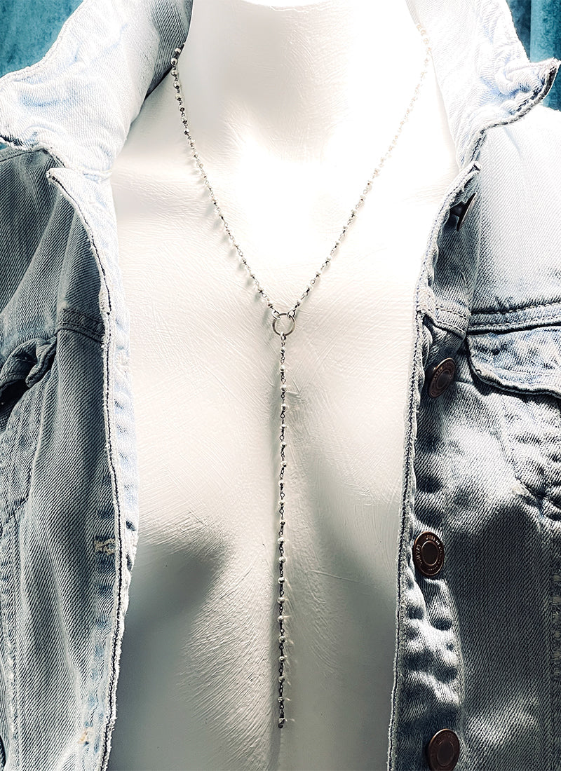 Gwyneth Silver Pyrite Blackened Brass Rosary Chain